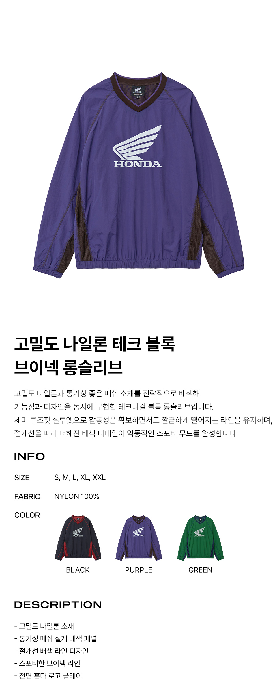 혼다 나일론 메시 블록 롱슬리브 퍼플