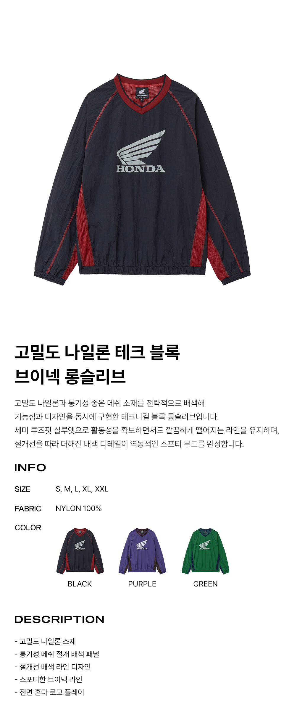 혼다 나일론 메시 블록 롱슬리브 블랙