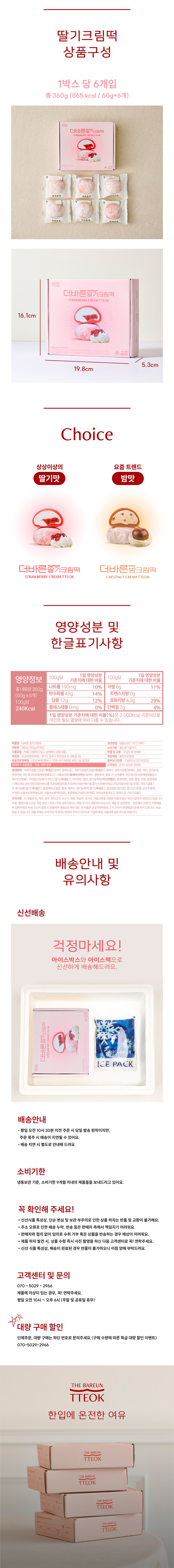 THE BAREUN TTEOK Strawberry Cream Tteok (60g *6EA) 1Box