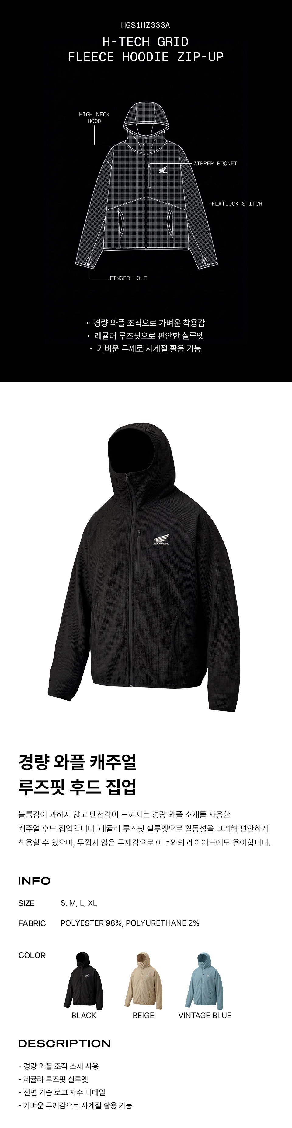 혼다 H-Tech 그리드 플리스 후디 집업 블랙