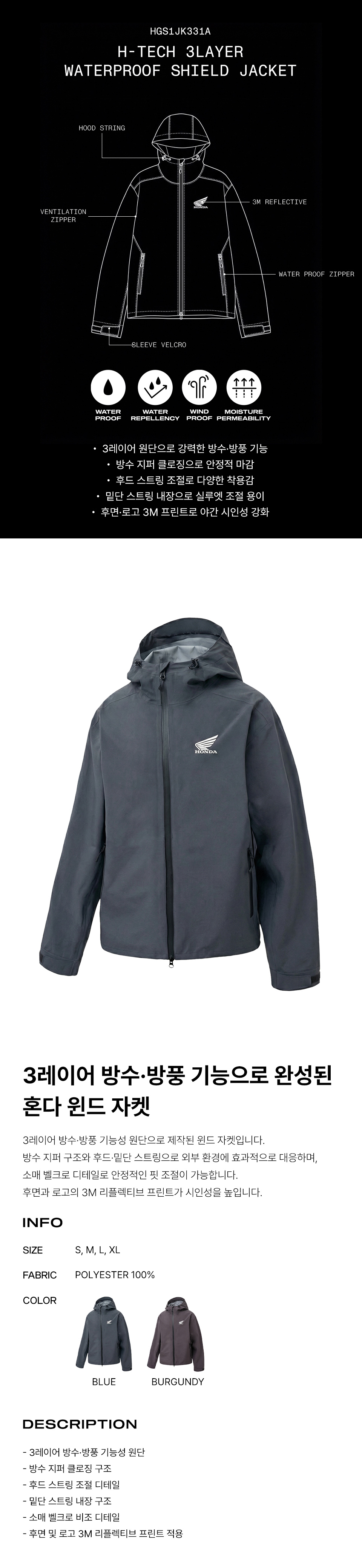 [KREAM 단독] 혼다 H-Tech 3레이어 워터프루프 쉴드 재킷 블루