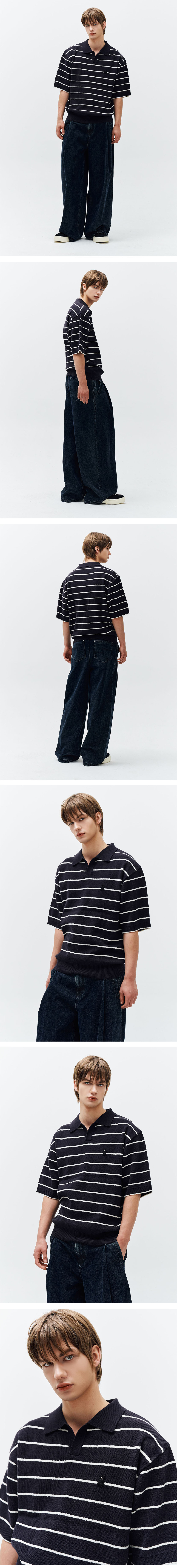 ZIOSONGZIO SEMBLANCE Boucle Stripe Open Collar Knit Navy
