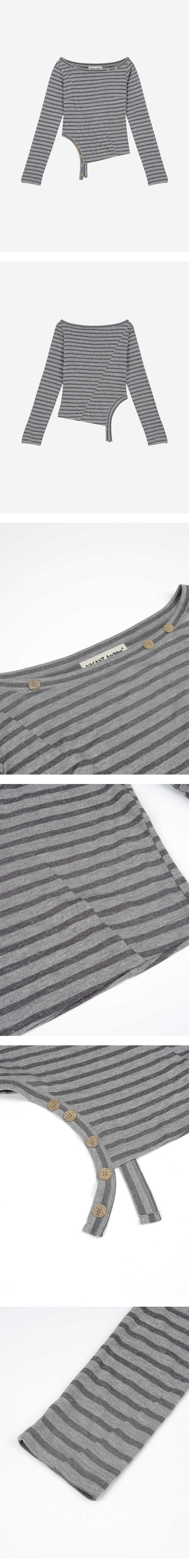 베이컨트 아카이브 마호 오프숄더 스트라이프 롱 슬리브 그레이