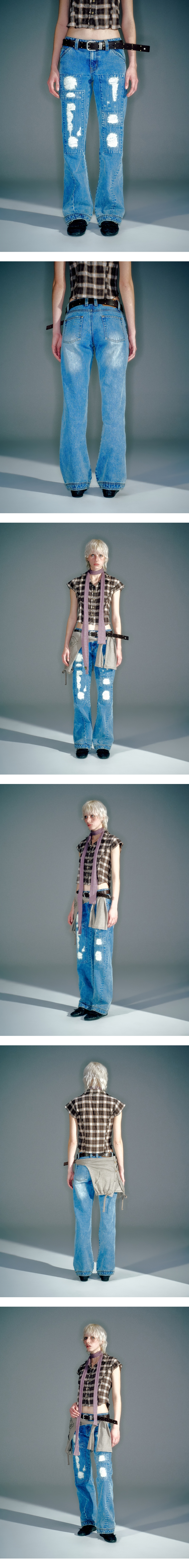 베이컨트 아카이브 피타 스트레이트 데미지드 데님 블루