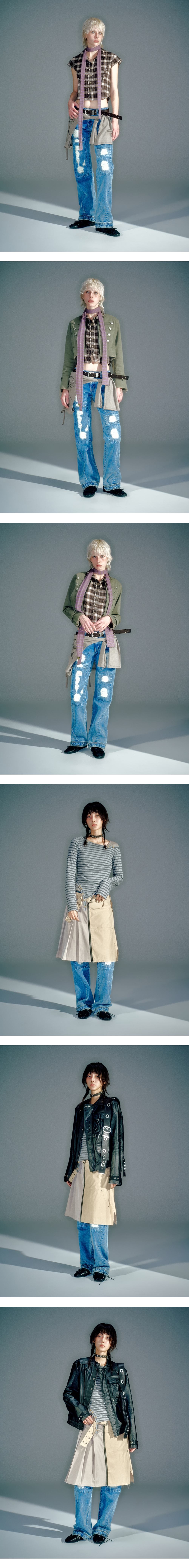 스트레이트 실루엣의 데님 팬츠로 캐주얼한 무드 연출 전면에 더해진 구제와 스티치 디테일로 빈티지한 포인트 탄탄한 데님 소재에 바이오 워싱 가공을 더해 퀄리티를 높임 심라인 부터 앞판 중심으로 떨어지는 절개 포인트 S/M (CM) Length : 104 / 106 Waist : 37.5 / 39.5 Hip : 47.5 / 49.5 Thigh : 29 / 30 Front Rise : 22 / 23 Hem : 23 / 24 1. Model is 177cm and is wearing a size S 2. Model is 168cm and is wearing a size S COTTON 100%