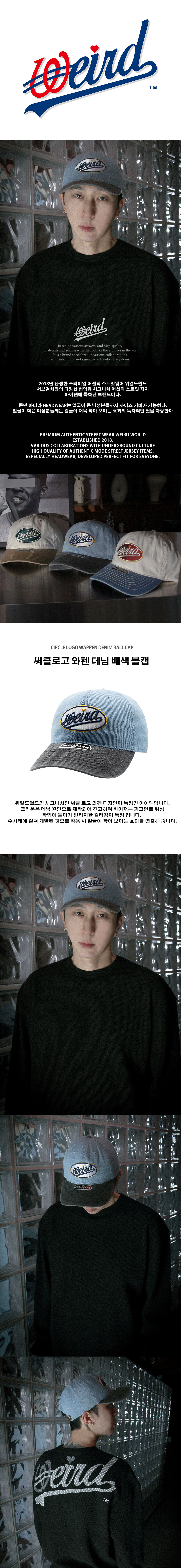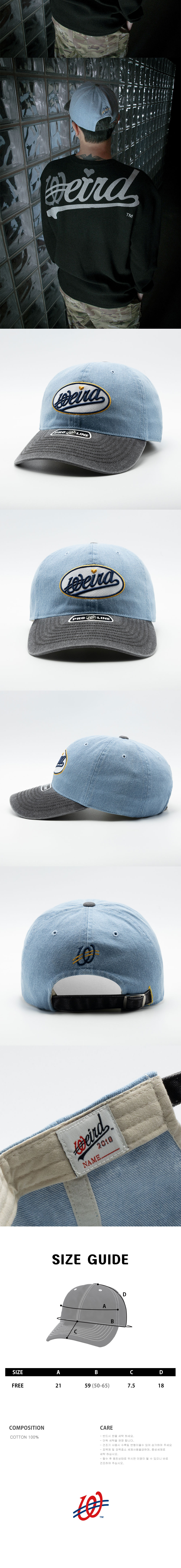위얼드월드 써클로고 와펜 데님 배색 볼캡 라이트블루