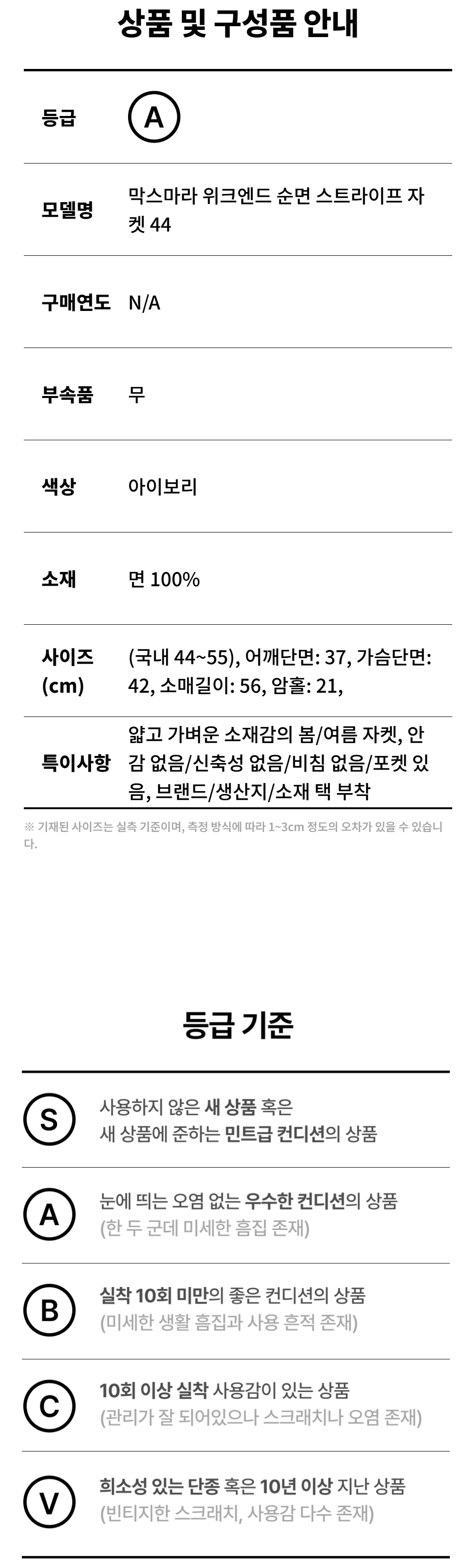 막스마라 위크엔드 순면 스트라이프 자켓 44