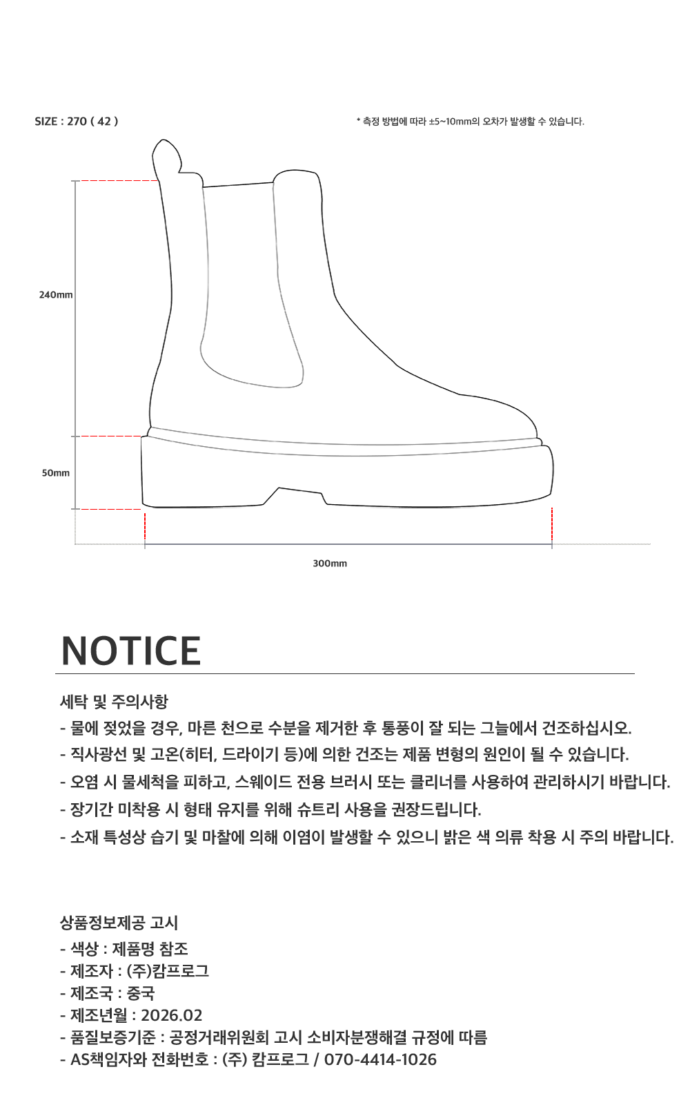 측정 방법에 따라 사이즈에 일부 오차가 있을 수 있습니다.