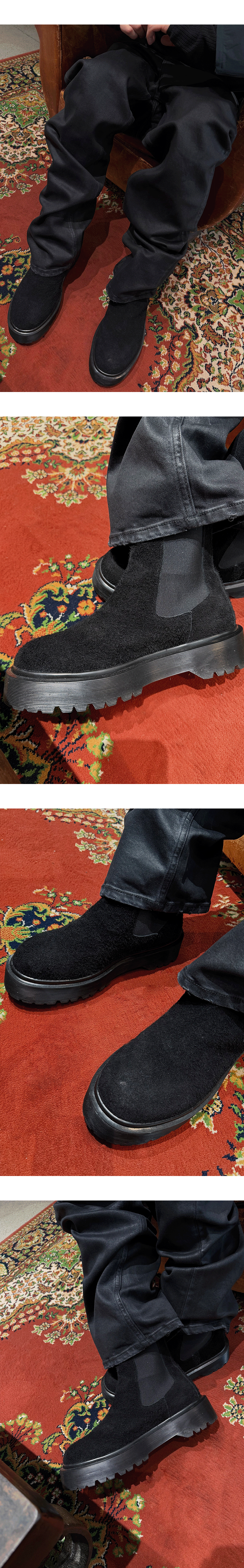 부드러운 질감의 Calf Suede로 제작된 첼시부츠입니다.