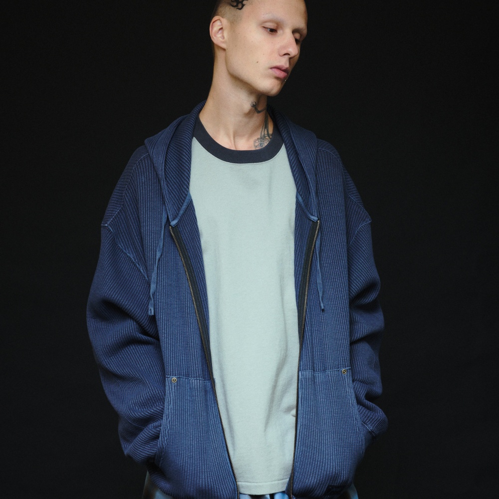 [CONTENT] COTTON 100% * MEASUREMENT MAY VARY +/-5% * COLOR MAY DIFFER DEPENDS ON THE LIGHT AND SCREEN CONDITION [DETAIL] 100% COTTON FABRIC TRENDY WAFFLE KNIT TEXTURE CLASSIC HOODED ZIP-UP SILHOUETTE INSANE PATCH DETAIL ON THE FRONT POCKET VINTAGE PIGMENT-DYED WASH FINISH EQUIPPED WITH YKK ZIPPER [CARE] -REFER TO CARE LABEL (케어라벨 참고)