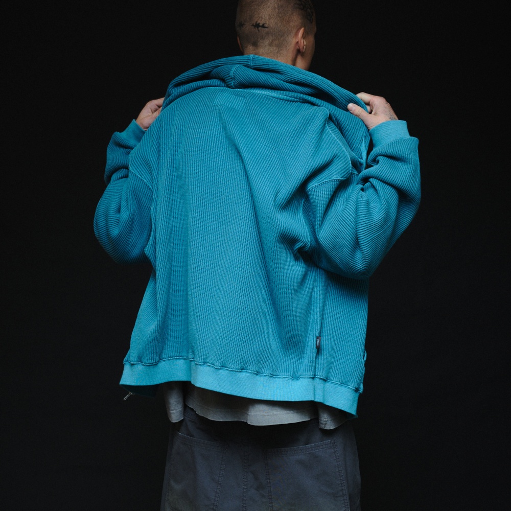 [CONTENT] COTTON 100% * MEASUREMENT MAY VARY +/-5% * COLOR MAY DIFFER DEPENDS ON THE LIGHT AND SCREEN CONDITION [DETAIL] 100% COTTON FABRIC TRENDY WAFFLE KNIT TEXTURE CLASSIC HOODED ZIP-UP SILHOUETTE INSANE PATCH DETAIL ON THE FRONT POCKET VINTAGE PIGMENT-DYED WASH FINISH EQUIPPED WITH YKK ZIPPER [CARE] -REFER TO CARE LABEL (케어라벨 참고)