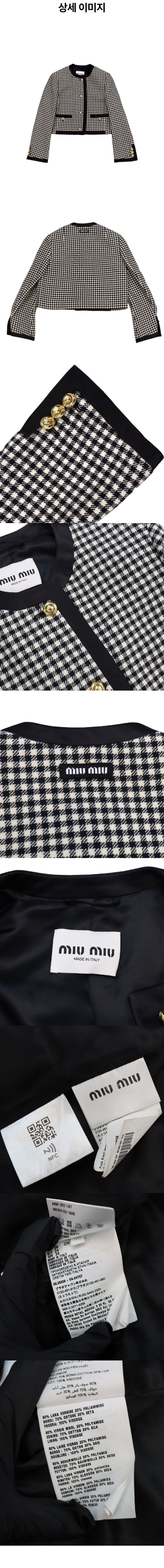 미우미우 블랙 화이트 하운드투스 울 재킷 A-C49803