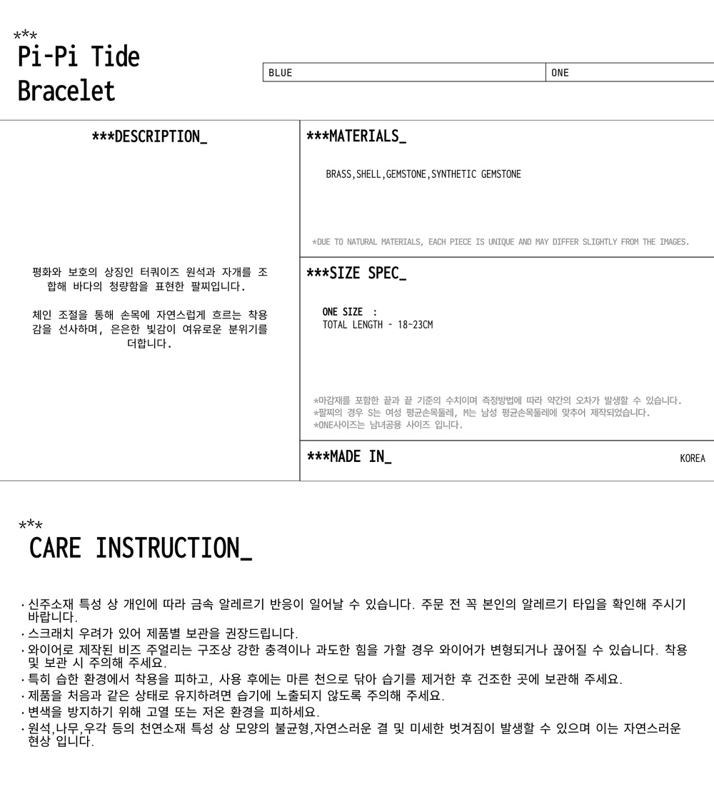토우토우아카이브 피피 타이드 팔찌 블루
