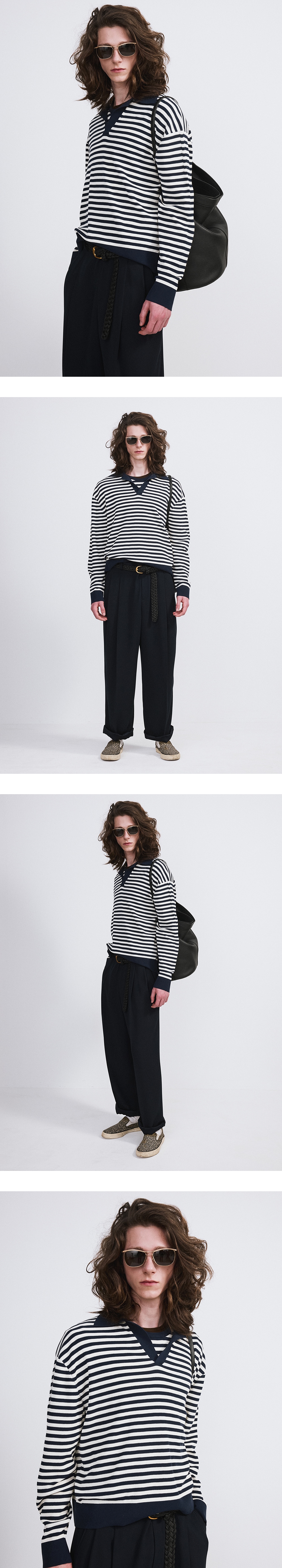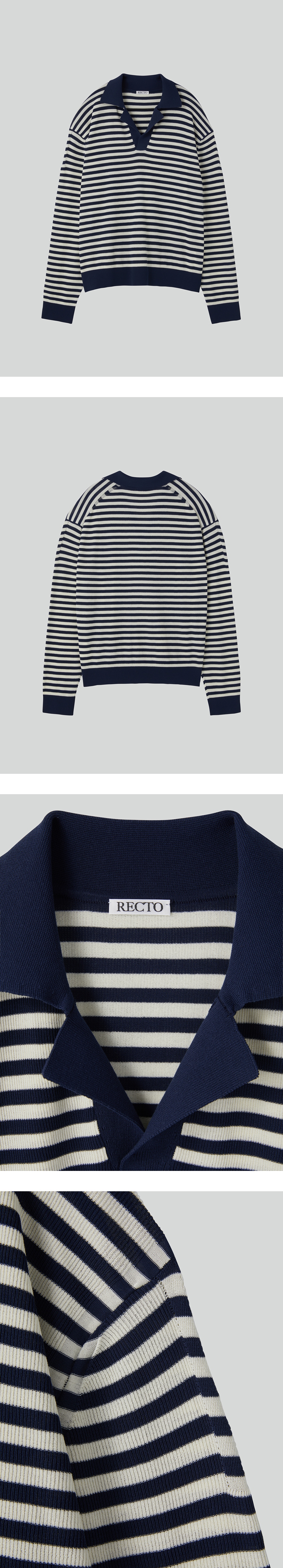 - 스트라이프 패턴의 골지 폴로 니트 롱 슬리브 - 오픈 카라 디자인 - 여유 있는 실루엣으로 편안한 착용감 - 신축성 있는 골지 조직으로 자연스럽게 흐르는 실루엣 - MADE IN KOREA 모델 착용 사이즈 : M / 모델 사이즈 정보 : HEIGHT 184CM/ BUST 33"/ WAIST 27"/ HIPS 34"/ SHOES 285MM