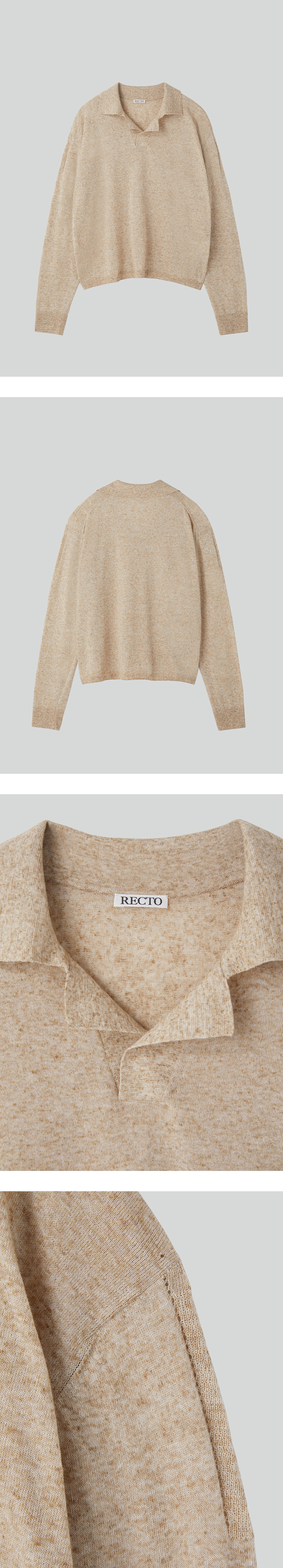 - 린넨 혼방의 폴로 셔츠 니트 롱 슬리브 - 오픈 카라 디자인 - 여유 있는 실루엣으로 편안한 착용감 - MADE IN KOREA 모델 착용 사이즈 : M / 모델 사이즈 정보 : HEIGHT 184CM/ BUST 33"/ WAIST 27"/ HIPS 34"/ SHOES 285MM