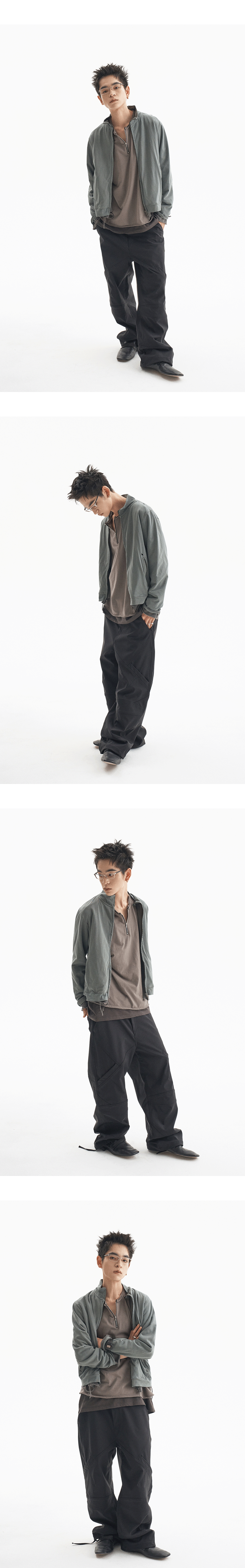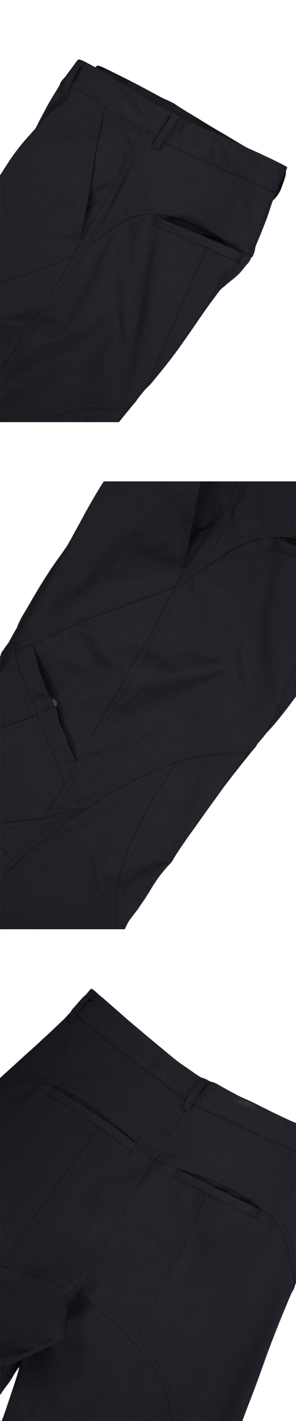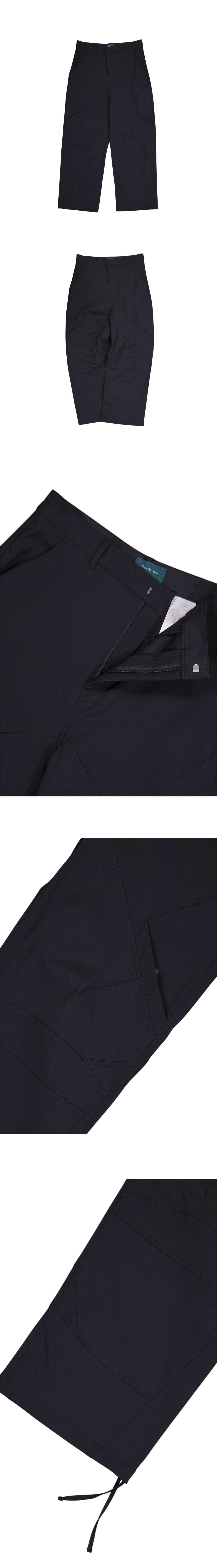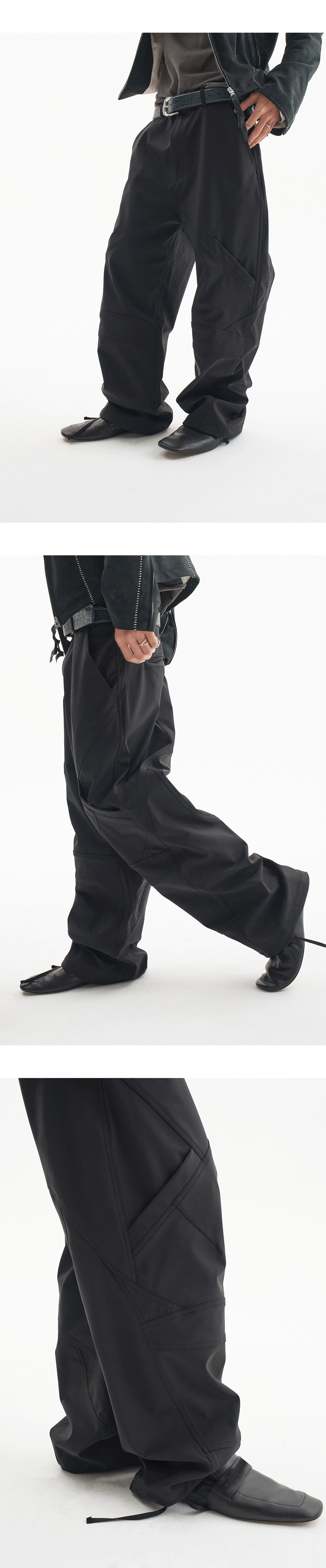 다양한 절개 디테일이 적용된 활용도 높은 나일론 팬츠입니다. MODEL : 180CM / 61KG WEARING SIZE : 0 2-Layer 구조의 합포 원단이 사용되었습니다. 겉면은 Nylon 88% / Polyurethane 12% 소재로 제작되었으며, 안쪽에는 Polyester 100% 원단이 결합된 구조로 제작되었습니다. 두 원단을 결합하여 내구성과 형태 안정성을 높였습니다.
