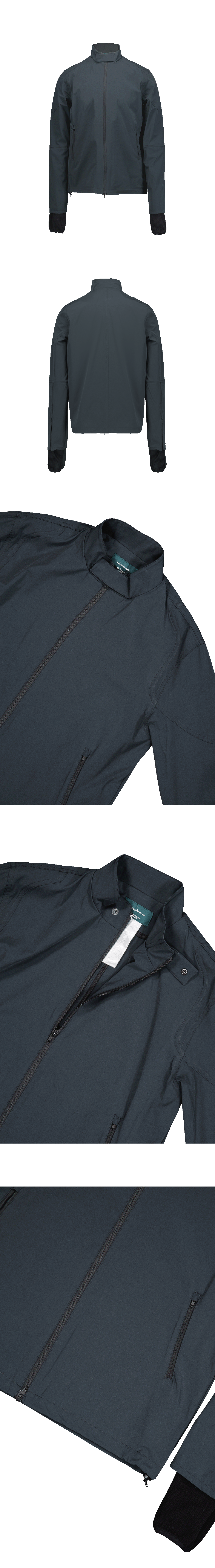 MODEL : 180CM / 61KG WEARING SIZE : 1 이중 소매에 핑거홀이 장착된 슬림한 실루엣의 하이브리드 자켓입니다.