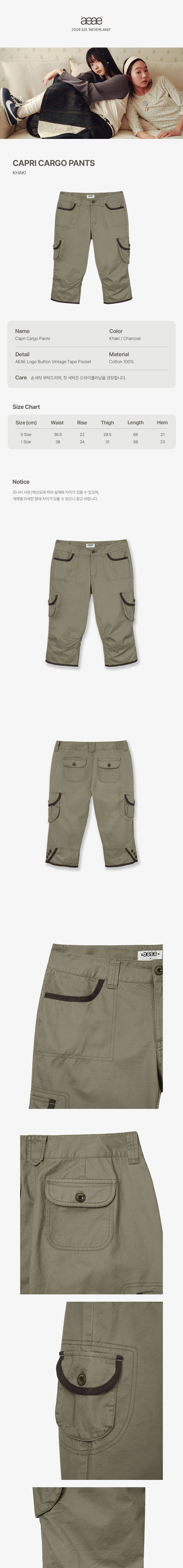 [예약 배송] 에이이에이이 카프리 카고 팬츠 카키