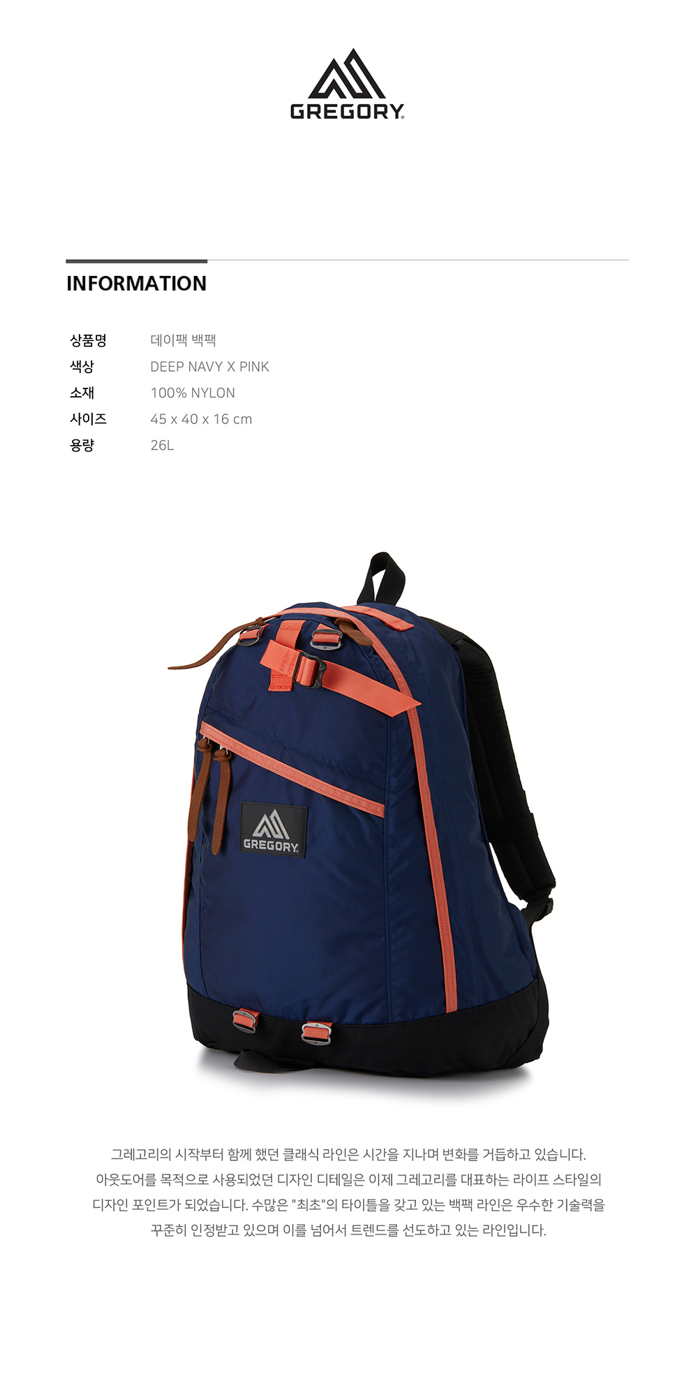 그레고리 데이팩 딥 네이비 핑크 백팩 26L