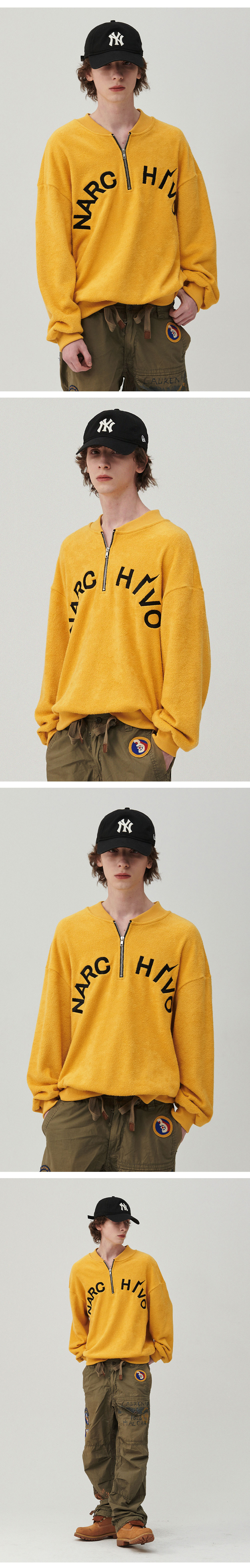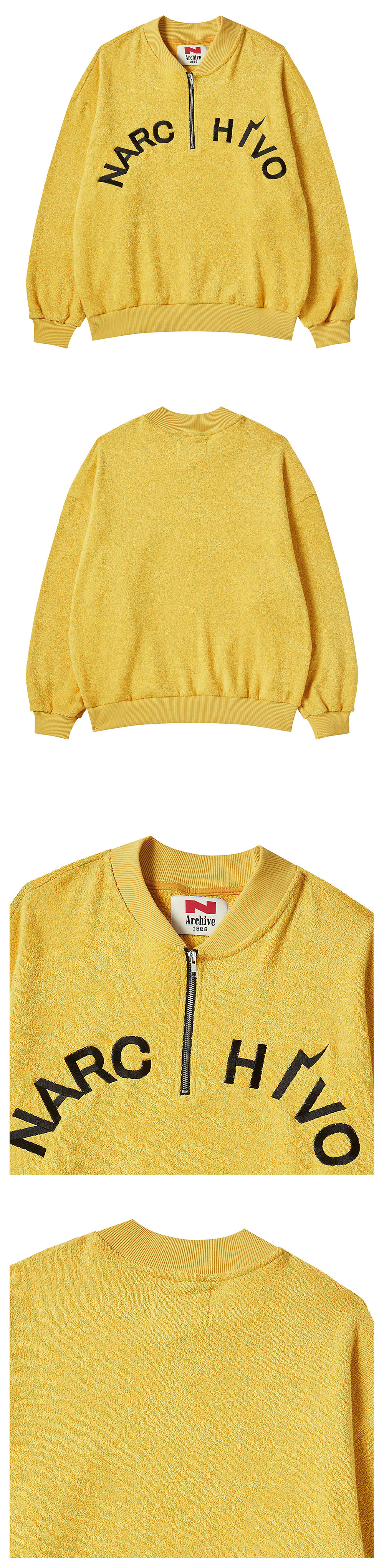 엔 아카이브 헤비 테리 하프 집업 스웨트 셔츠 옐로우