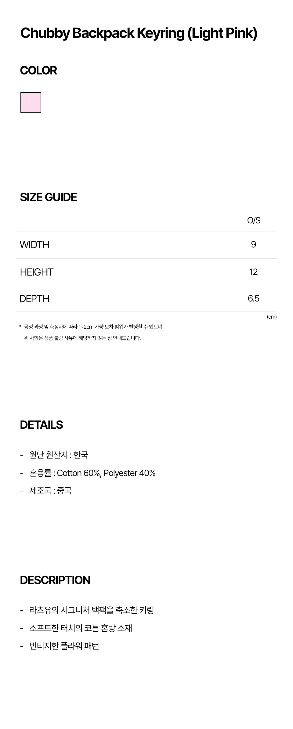 LOTS YOU Chubby Backpack Keyring Light Pink