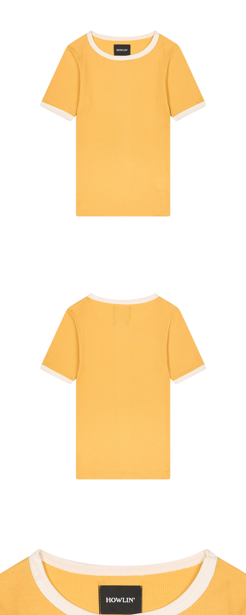 하울린 우먼 컬트 클래식 버터 인 더 선입니다. - 넥라인과 소매 끝 배색 디테일의 링거 티셔츠 디자인 - 100% 코튼 소재의 인하우스 니트 파인 립 원단 - 오코텍스 100 인증 원사 사용 - 신축성 있는 슬림 실루엣 및 부드러운 촉감