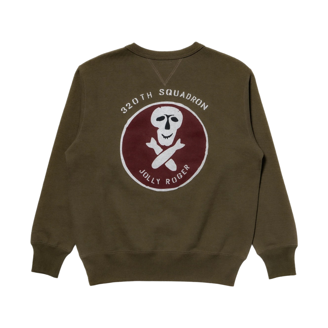 더 리얼 맥코이 졸리 로저 밀리터리 프린트 스웨트셔츠 올리브
