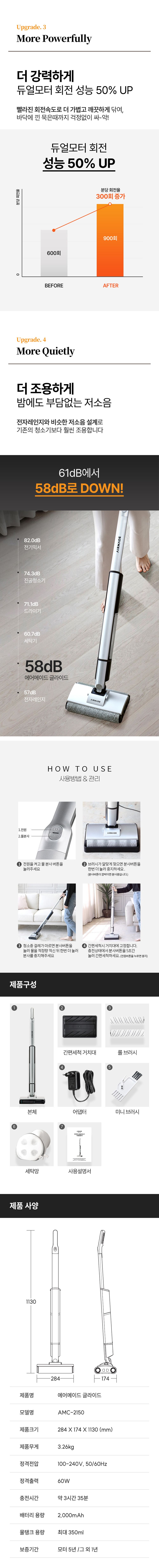 에어메이드 닦는 순간 스스로 세척! 물걸레 마른걸레 트윈 스핀 물걸레 청소기 글라이드 2150 실버