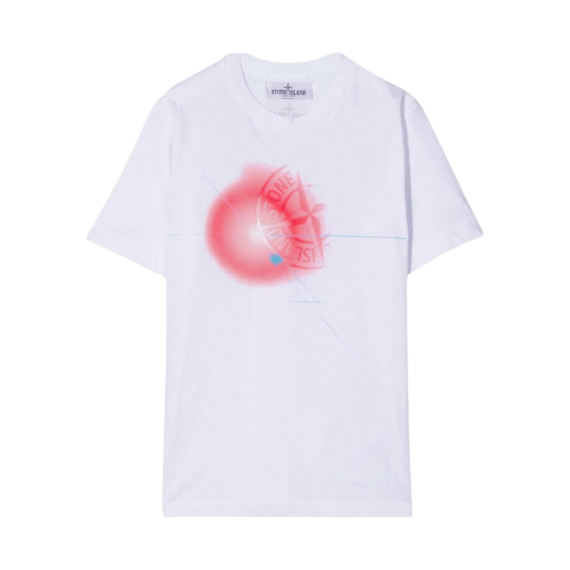 (Kids) Stone Island 21055 30/1 Cotton Jersey Lens Flare Two Print Garment Dyed T-Shirt White - 22SS