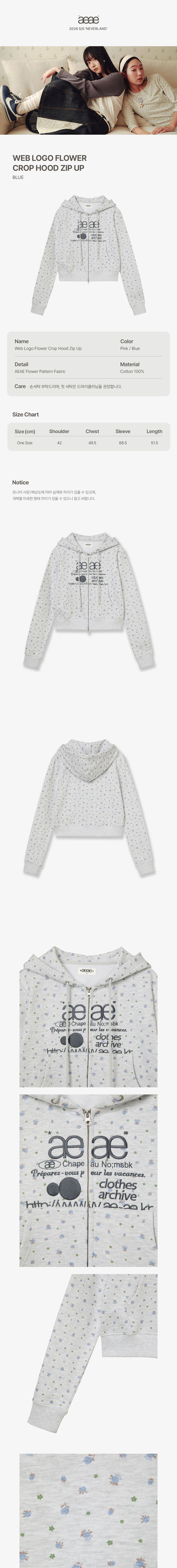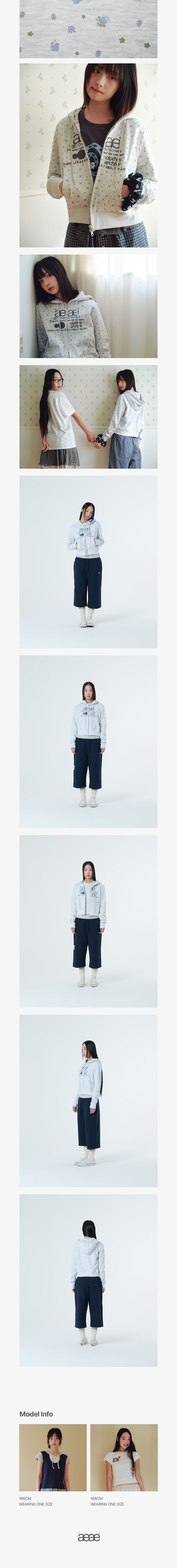 에이이에이이 웹 로고 플라워 크롭 후드 집업 블루