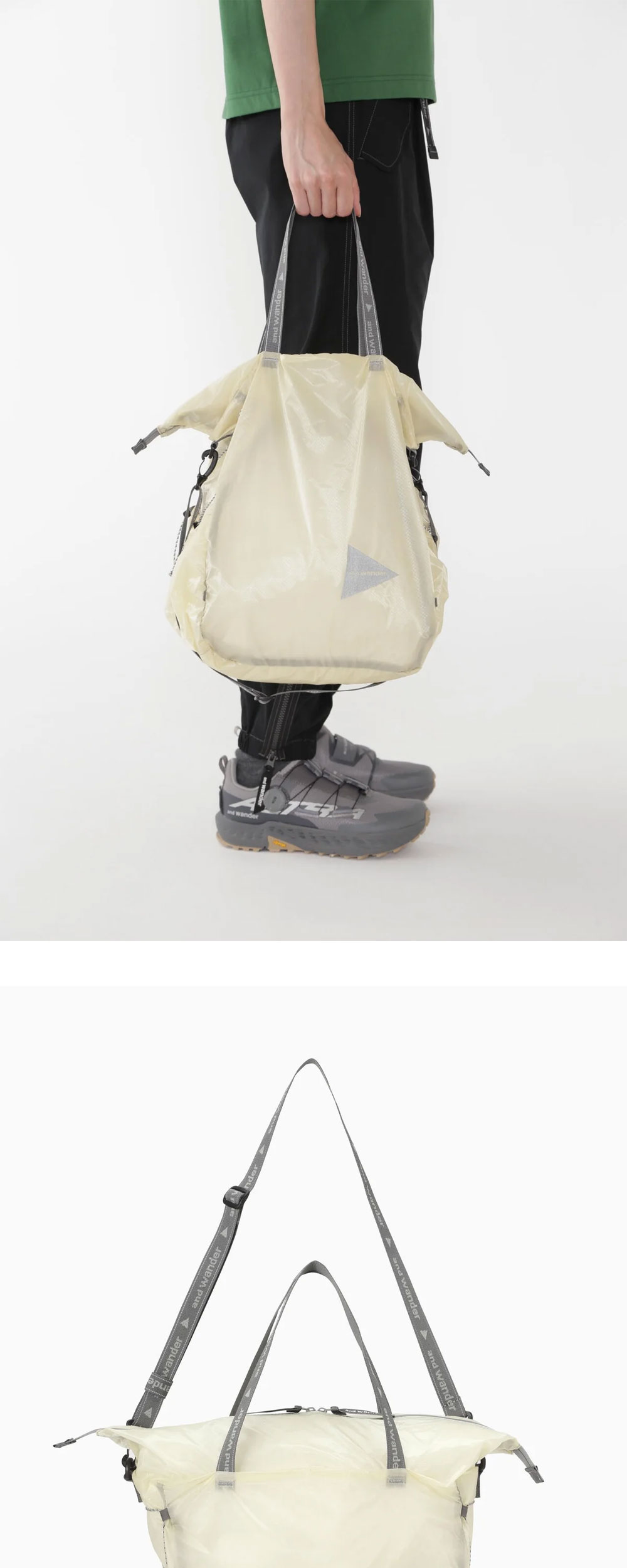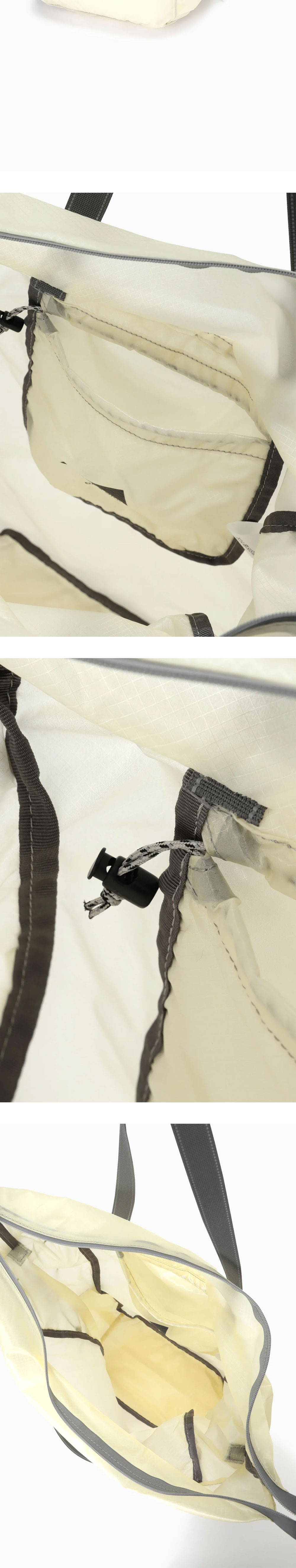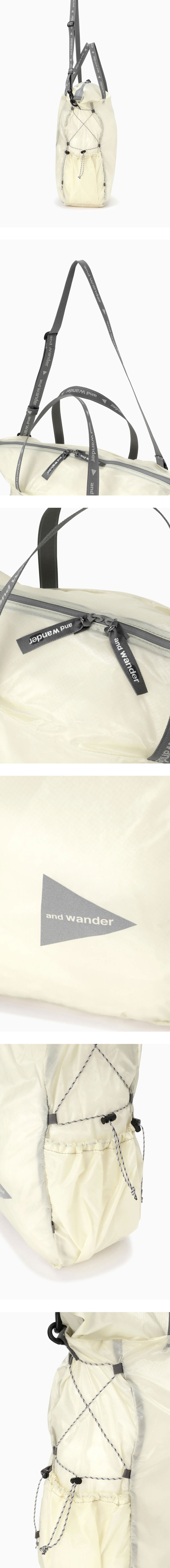 앤드 원더 127 실 토트 백 오프 화이트 입니다. - INVISTA 30D 코듀라 나일론 - 내수압 1,000mm 이상의 기능성 소재 - 25L 대용량 및 본체 수납 가능한 패커블 사양 - 토트 및 숄더백으로 활용 가능한 스트랩