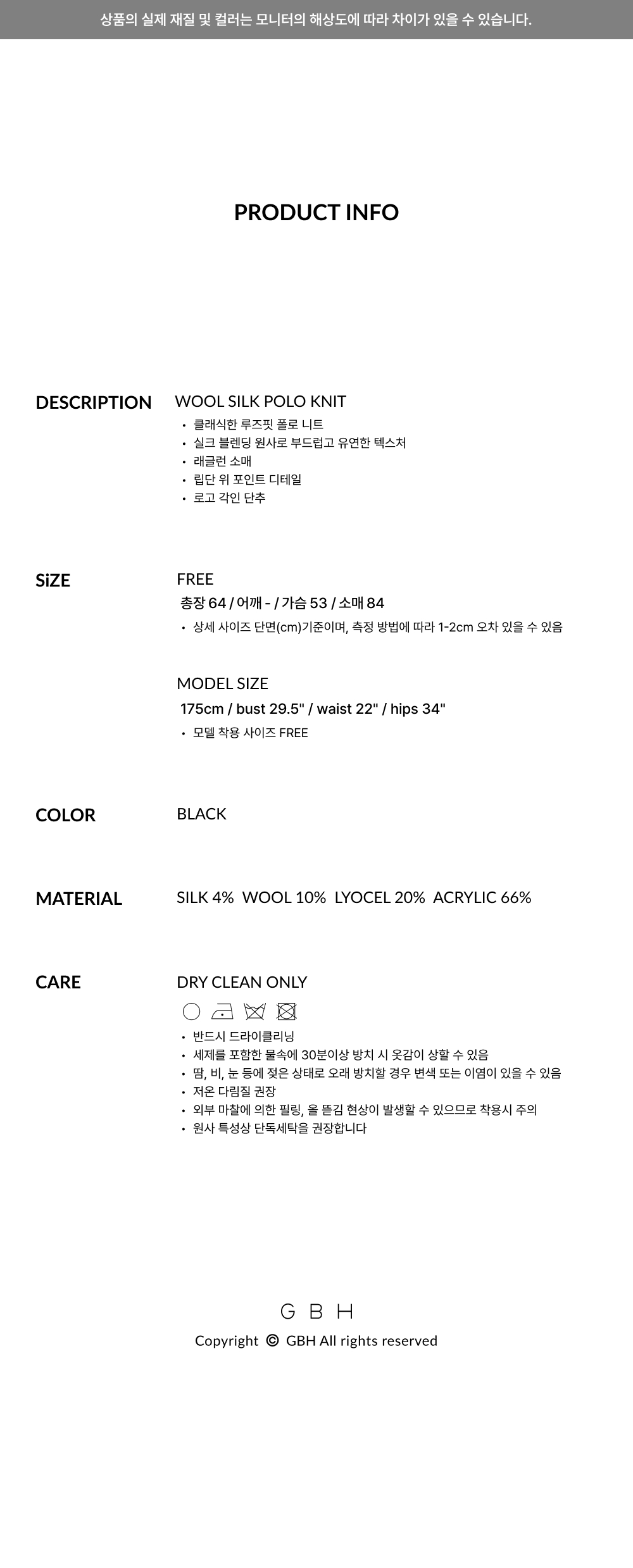지비에이치 어패럴 울 실크 폴로 니트 / 블랙