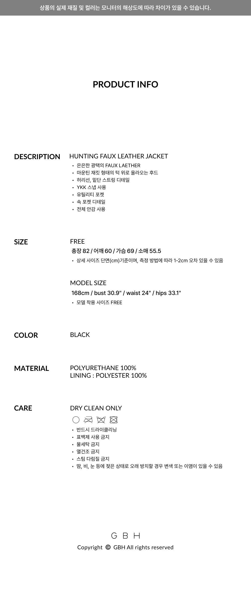 지비에이치 어패럴 헌팅 폭스 레더 자켓 / 블랙