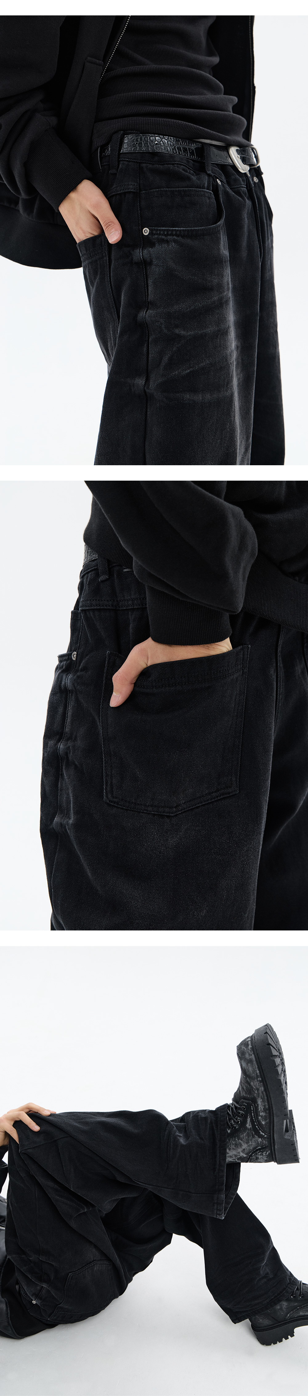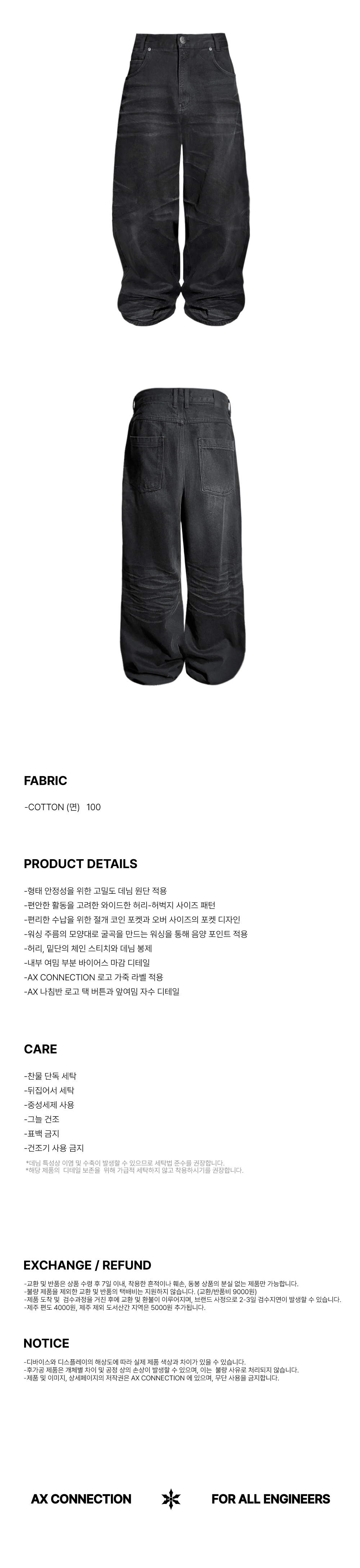 에이엑스커넥션 레이즈드 서피스 워시드 와이드 데님 팬츠