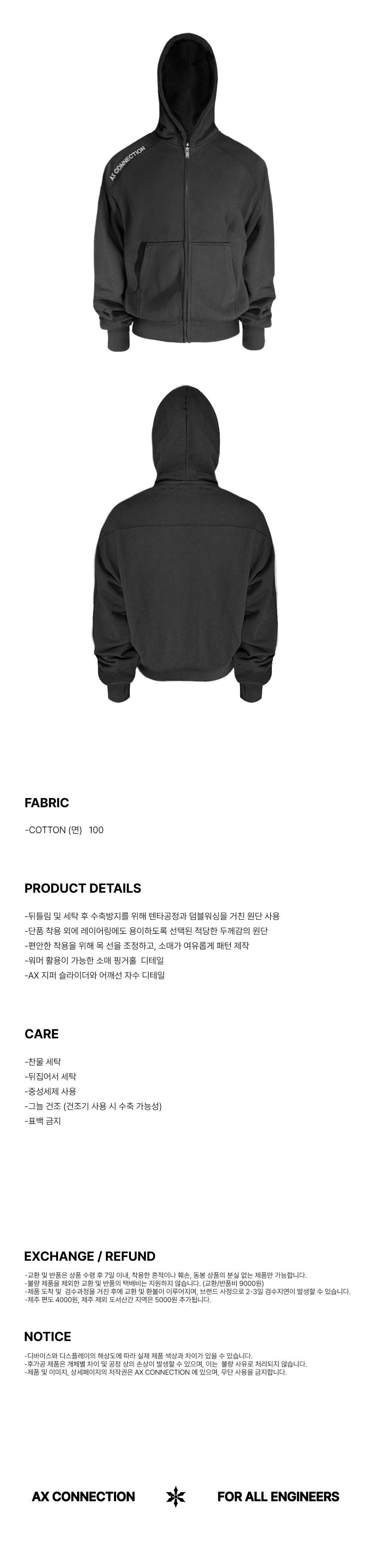 에이엑스커넥션 로고 스웻 후디 집업