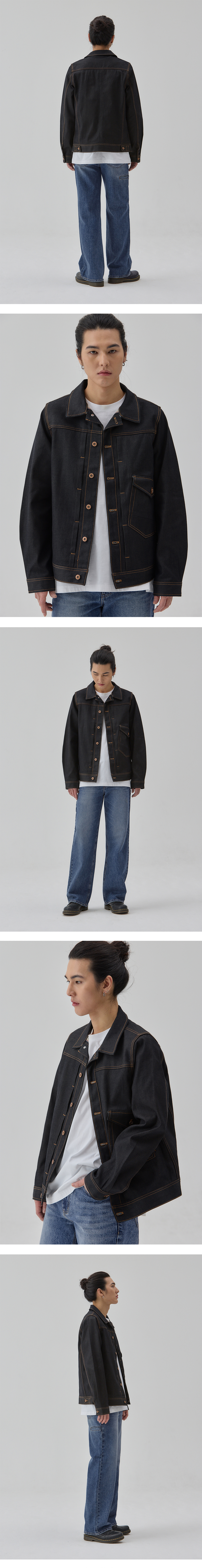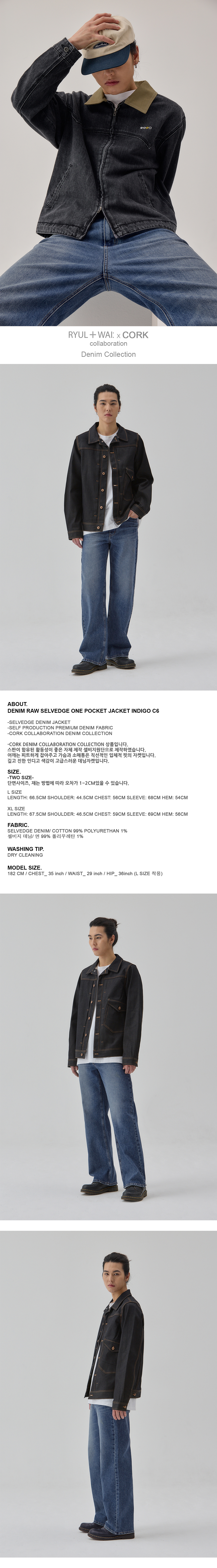 률앤와이 데님 생지 셀비지 원포켓 자켓 인디고 C6