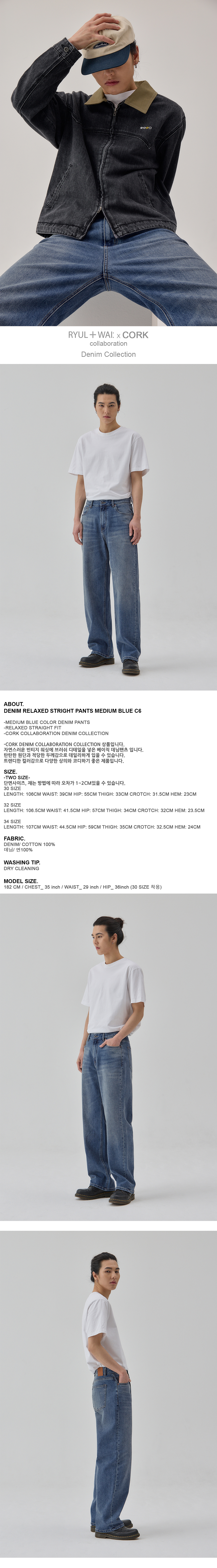 률앤와이 데님 릴렉시드 스트레이트 팬츠 미디움블루 C6
