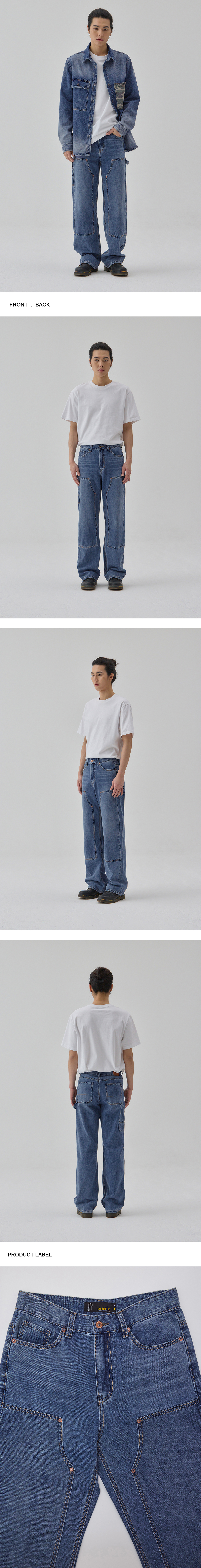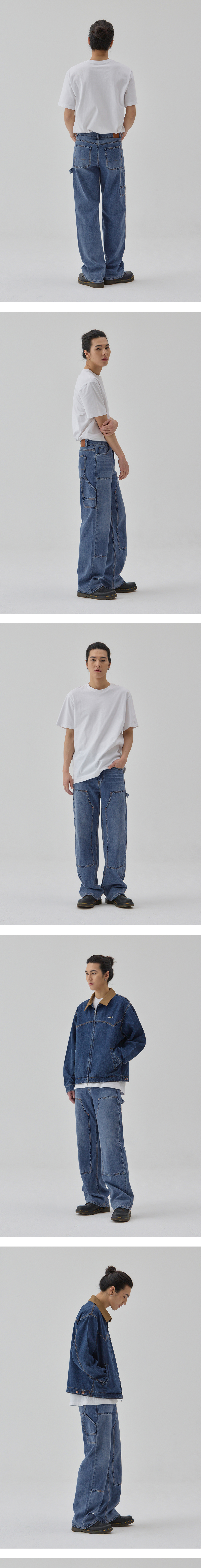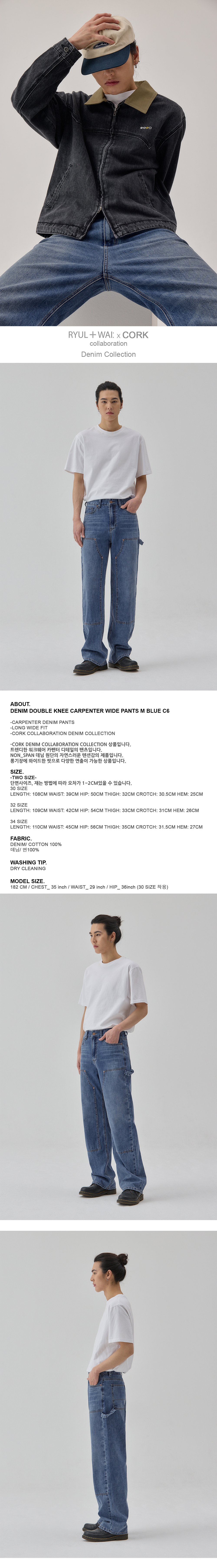 률앤와이 데님 더블 니 카펜터 와이드 팬츠 미디움 블루 C6