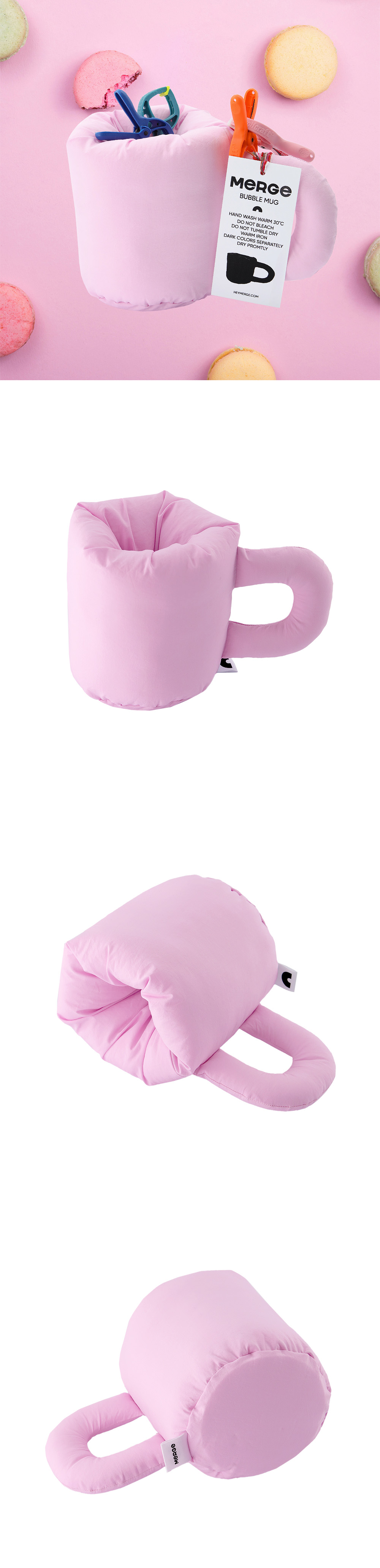 버블 머그는 익숙한 관습적 사고방식을 깨뜨리는 미술상의 초현실주의 기법인 데페이즈망(Dépaysement)에 기초하여 제작되었습니다. 일상에서 누구나 쉽게 발견할 수 있는 머그잔을 재치 있는 발상을 통해 새로운 오브제로 재탄생시킨 제품입니다. 기본적으로 연필꽂이로 사용할 수 있지만 작은 화병이나 화분을 꽂아 화분 커버로, 패브릭 소재를 자주 다루는 분에게는 핀 봉으로, 핀을 활용하여 간단한 메시지나 체크리스트가 적힌 종이를 고정해 둘 수도 있습니다. 유기적인 형태의 버블 머그는 거실, 침실, 작업실 등 어디에서든 당신에게 즐거움과 영감을 가져다줄 것입니다. 자주 사용하는 도구와 함께 테이블 위에 놓아보세요!