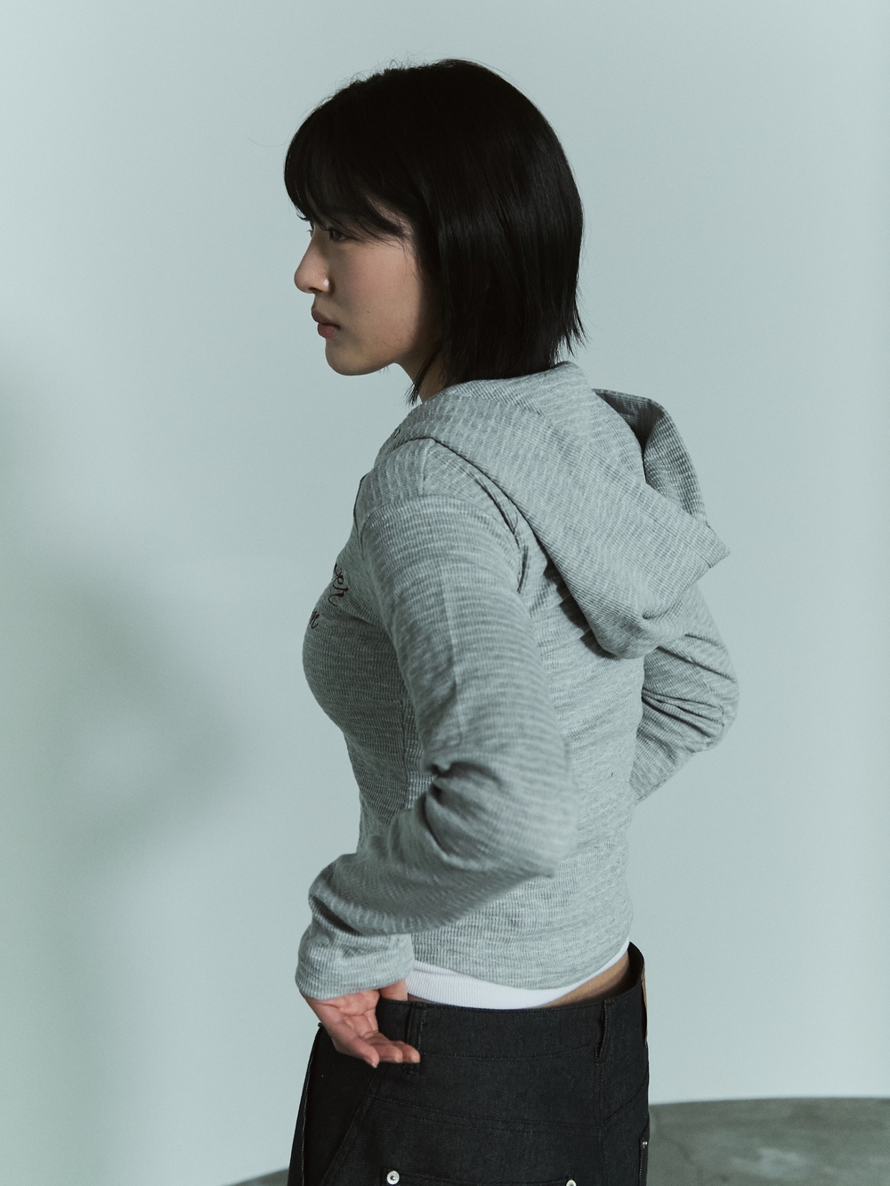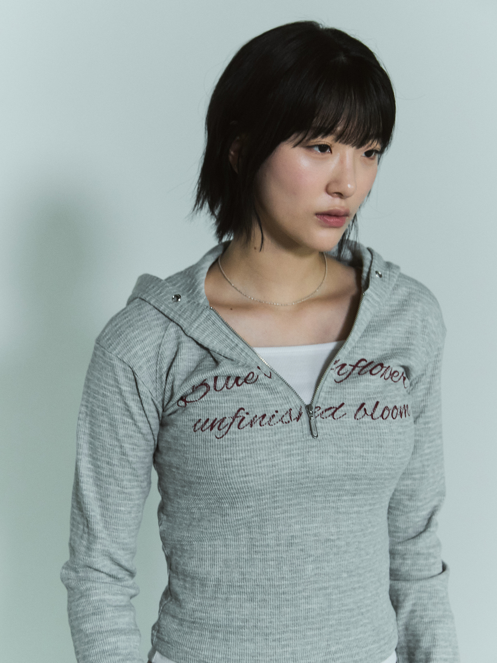 블루 선플라워 크롭 후드 하프집업 멜란지 그레이
