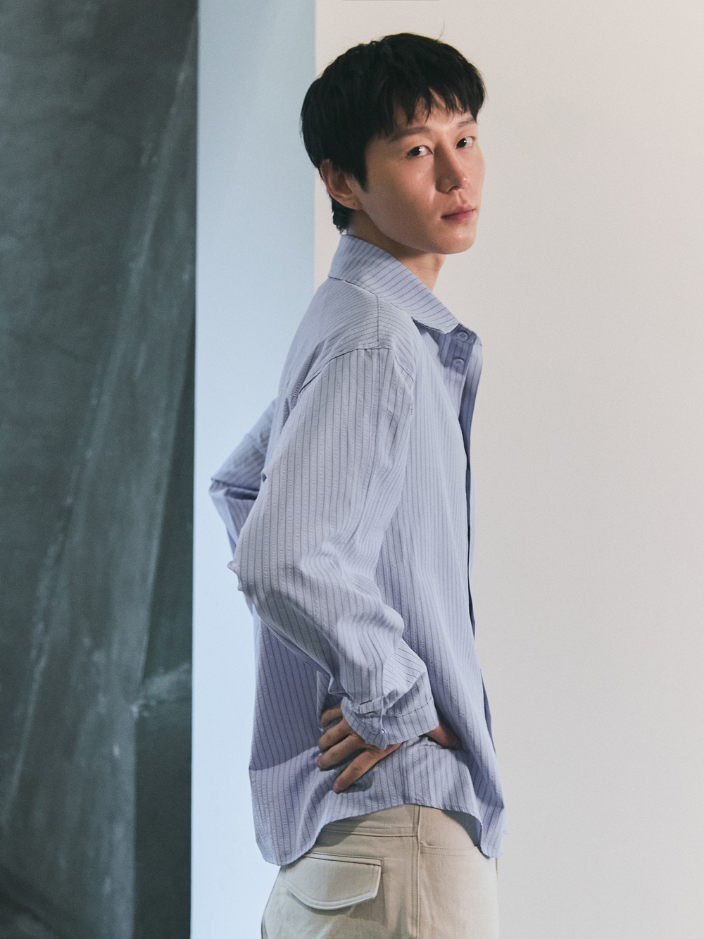 블루 선플라워 소프트 포멀 스트라이프 셔츠