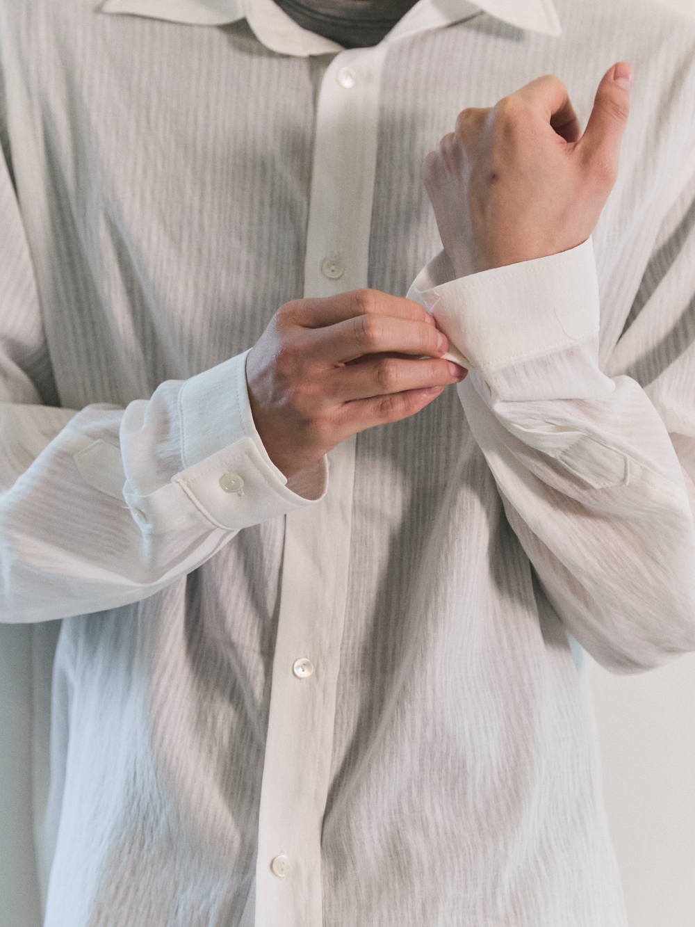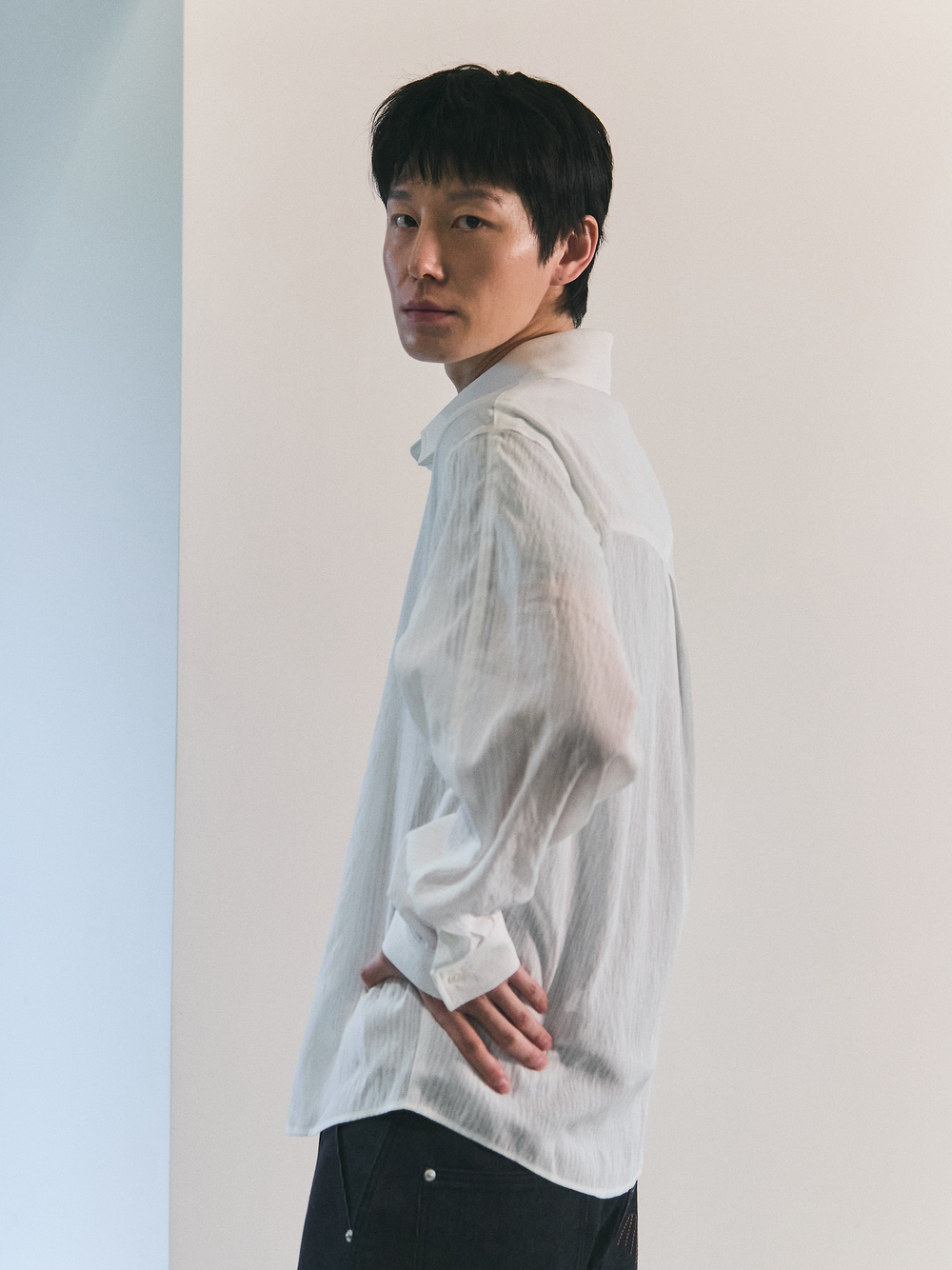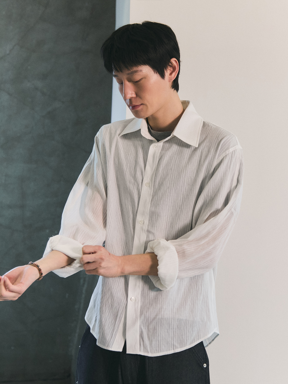 블루 선플라워 소프트 쉬어 셔츠 화이트