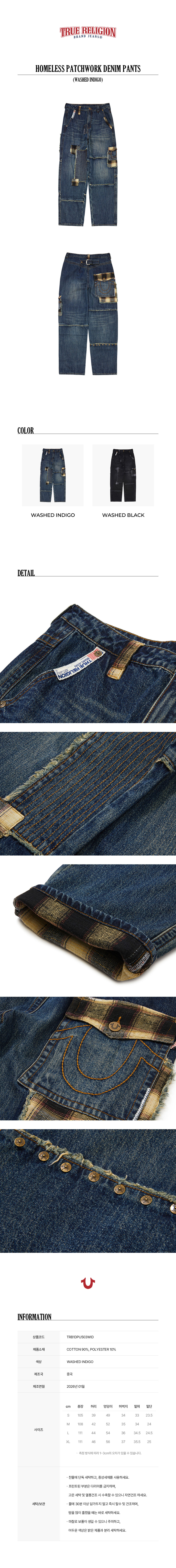 트루릴리젼 홈리스 패치 워크 데님 팬츠_워시드 인디고