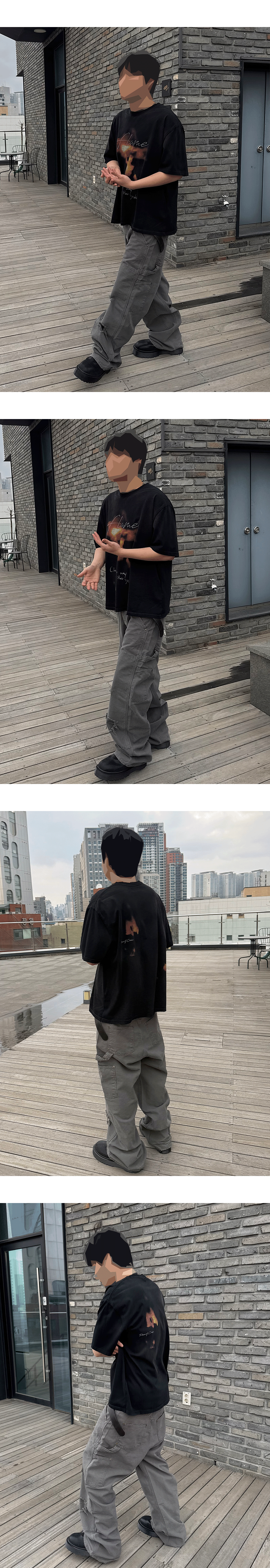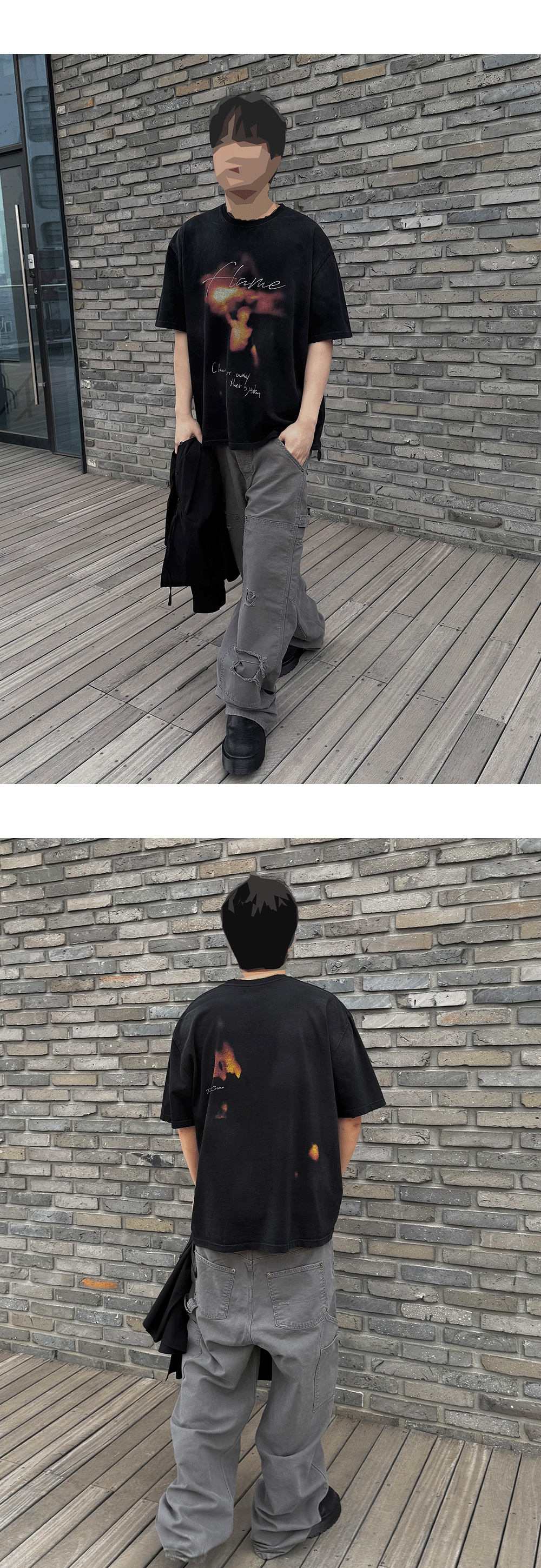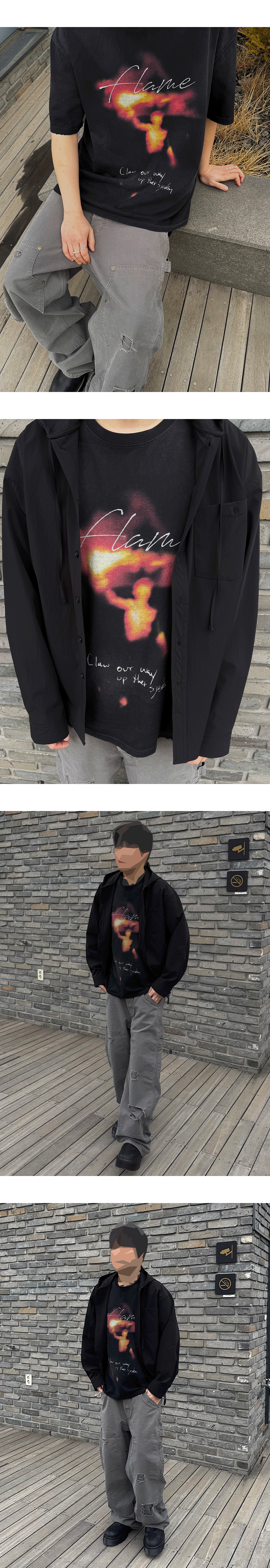 언더마이카 피오씨 플레임 빈티지 워시드 티셔츠 블랙
