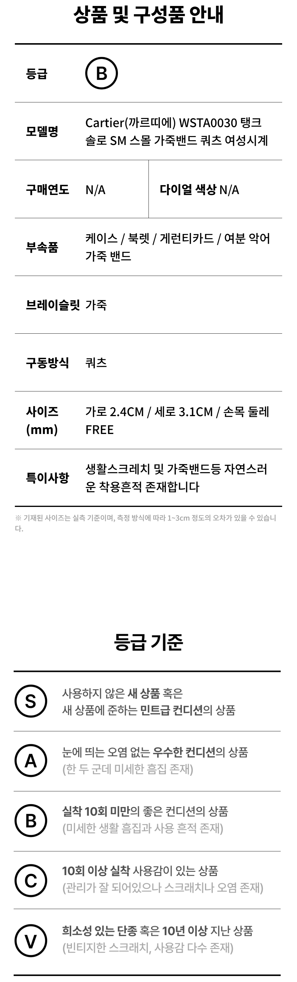 까르띠에 WSTA0030 탱크솔로 SM 스몰 가죽밴드 쿼츠 여성시계aa60505