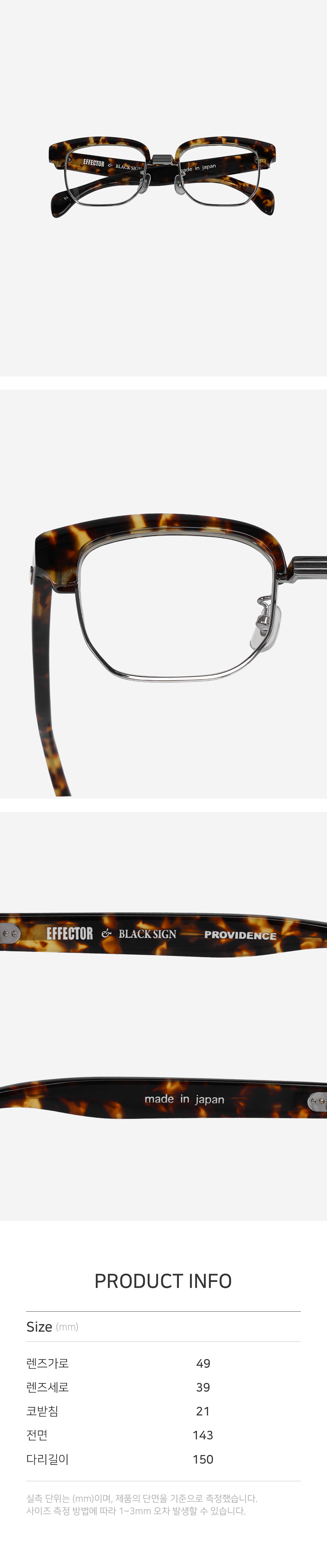 | 렌즈가로 | 렌즈세로 | 코받침 | 전면 | 다리길이 |