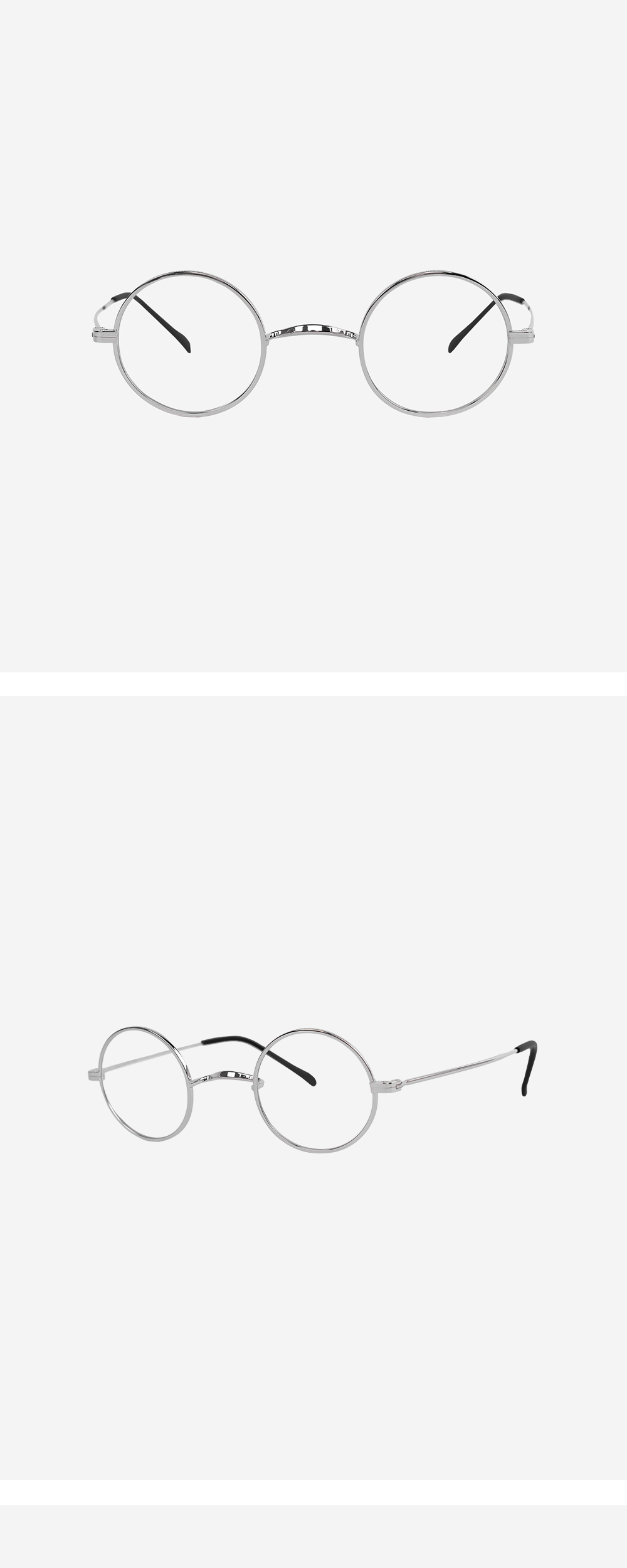 코받침 일체형인 새들노즈와 원형 프레임, 티타늄 소재의 안경