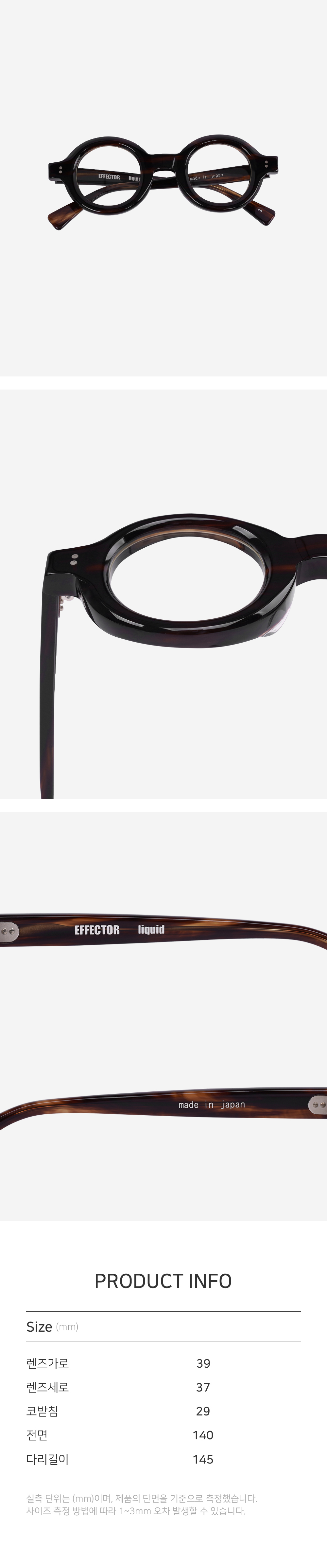 실측 단위는 mm이며, 제품의 단면을 기준으로 측정했습니다.