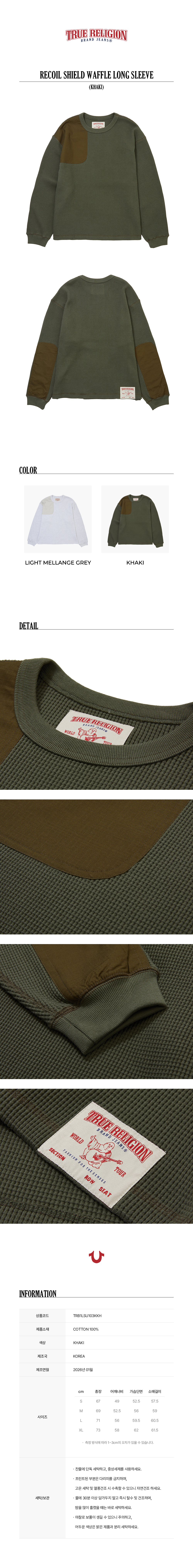 트루릴리젼 리코일 쉴드 와플 롱 슬리브_카키