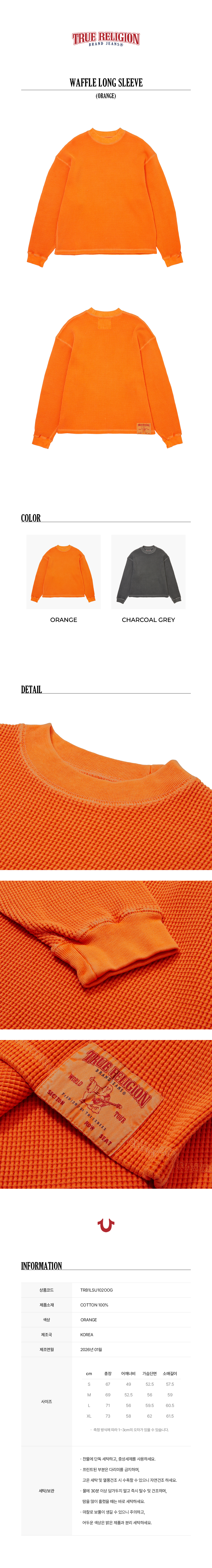 트루릴리젼 와플 롱 슬리브_오렌지